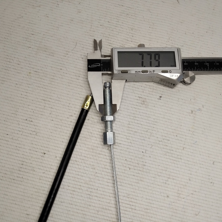 Длина рубашки (с резьбой) 123см, резьба 8мм, диаметр рубашки 6,5мм, диаметр троса 2,0мм